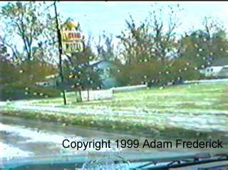 Later on, we ended up south of the storm when it decided to take a turn to the south. We started to get hit with hail, but the largest hail was probably marble sized. We took shelter at a gas station where I could park the car under the canopy for the gas pumps. The storm ended up producing heavy rain and lots of lightning. To view more video captures from this chase, check out the Photo Gallery section for 1998 Video Captures.