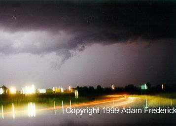 DISCLAIMER: Remember storm chasing exposes chasers to many hazardous and potentially deadly weather conditions such as lightning, dangerous roads, damaging winds, hail, and flying debris which puts the chaser's life at risk, particularly those who have little or no experience and/or storm structure education. Learning to deal with these is best done by understanding supercells and thunderstorms, and riding with an experienced chaser before attempting to chase on their own. The author of these pages does not encourage storm chasing and is therefore not responsible for any actions as a result of what is seen here! For video or picture sales, questions or comments, please visit our Contact Us page. Pictures and content on this web site, unless otherwise noted, are Copyright 2001 Weather Edge. and may not be reproduced without written consent. For problems, questions or comments regarding this site, please visit our Contact Us page. Web site created by Weather Edge Inc. For your web design needs, please visit http://www.weatheredge.com. |